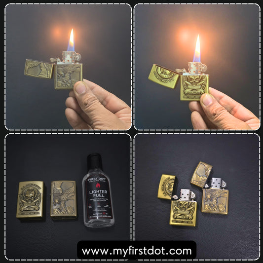 Combo of 2 Embossed Metal Cigarette Lighters + Free 50ml Fuel