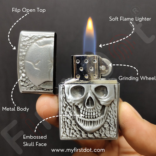 Skull Classic Lighter | Windproof Cigarette Lighter Silver