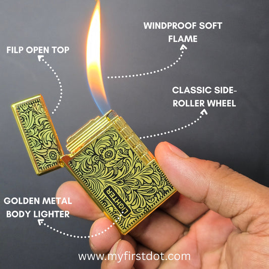 Aureum Premium Metal Body Side-Roller Flint Lighter (Butane Gas)
