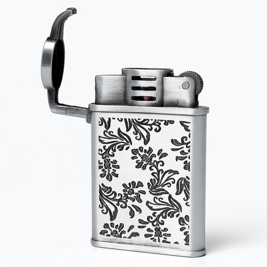Vintage Leaf Carved Jet Flame Lighter Silver