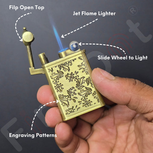 Embossed Floral Slim Jet Fire Lighter – Windproof & Stylish