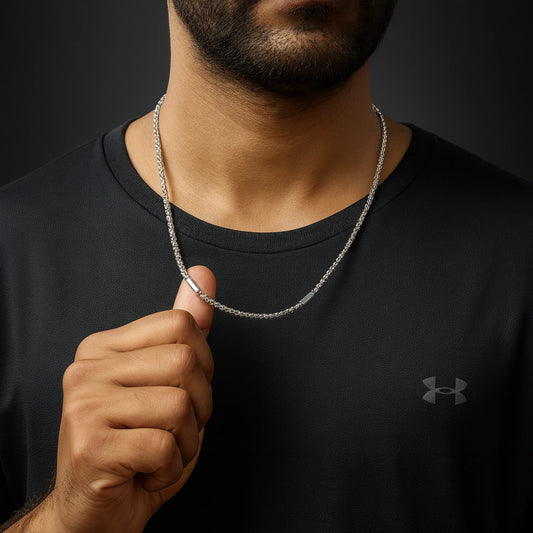 Silver Ball Beaded Chain for Men – 21.5 Inch Necklace