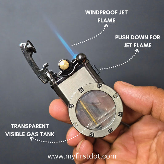 Vortex Premium Metal Body Side-Roller Flint Lighter (Butane Gas)
