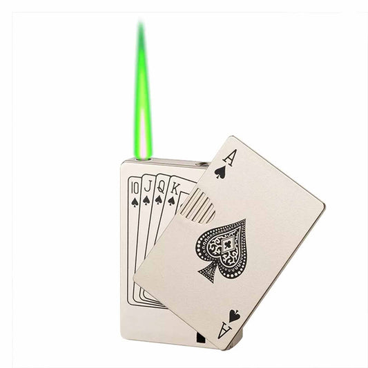 Gold Ikka Poker Card Green Torch Lighter | Windproof