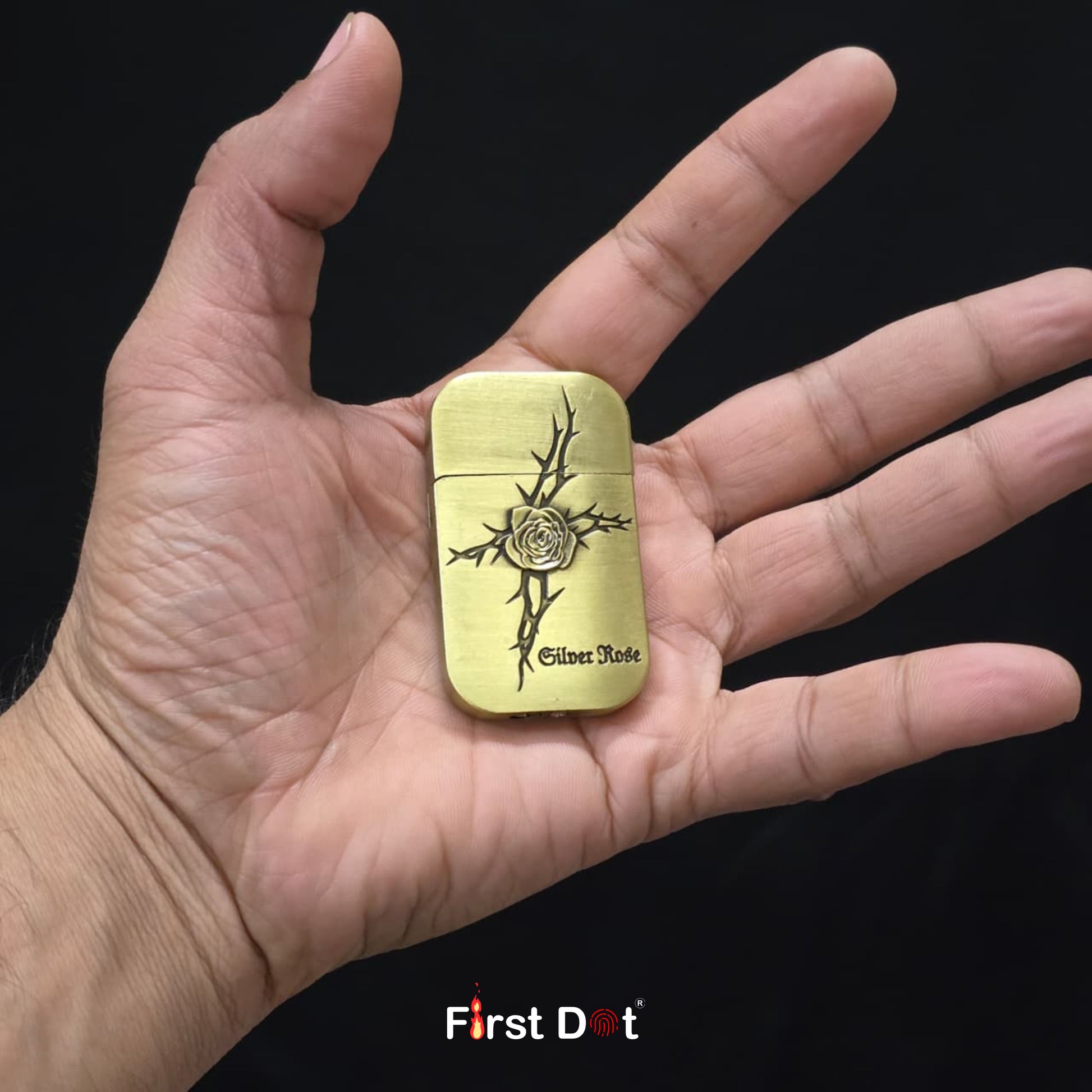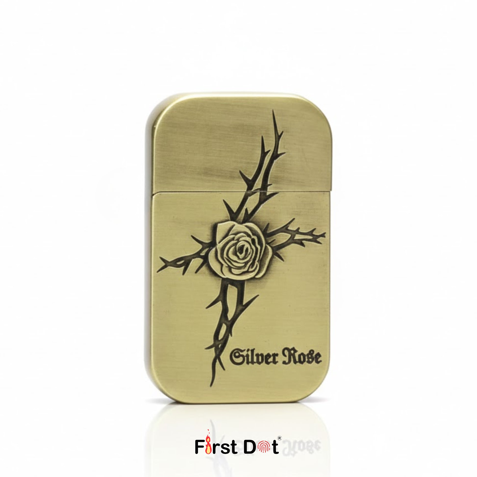 The First Dot Silver Rose Jet Flame Lighter blends artistic expression with dependable performance. Crafted in a solid metal body, it features a striking rose-and-thorns engraving—symbolizing strength, passion, and resilience—making it more than just a lighter.