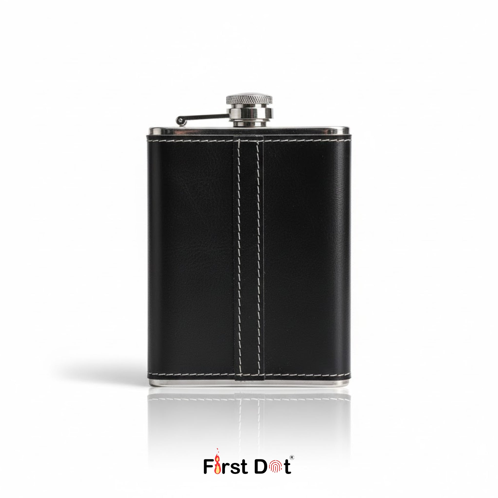 The full leather-wrapped hip flask features a stainless steel inner body fully covered in smooth leather for a uniform look and comfortable grip. The wrap reduces fingerprints, improves handling, and adds a classic aesthetic that fits both formal and casual settings.