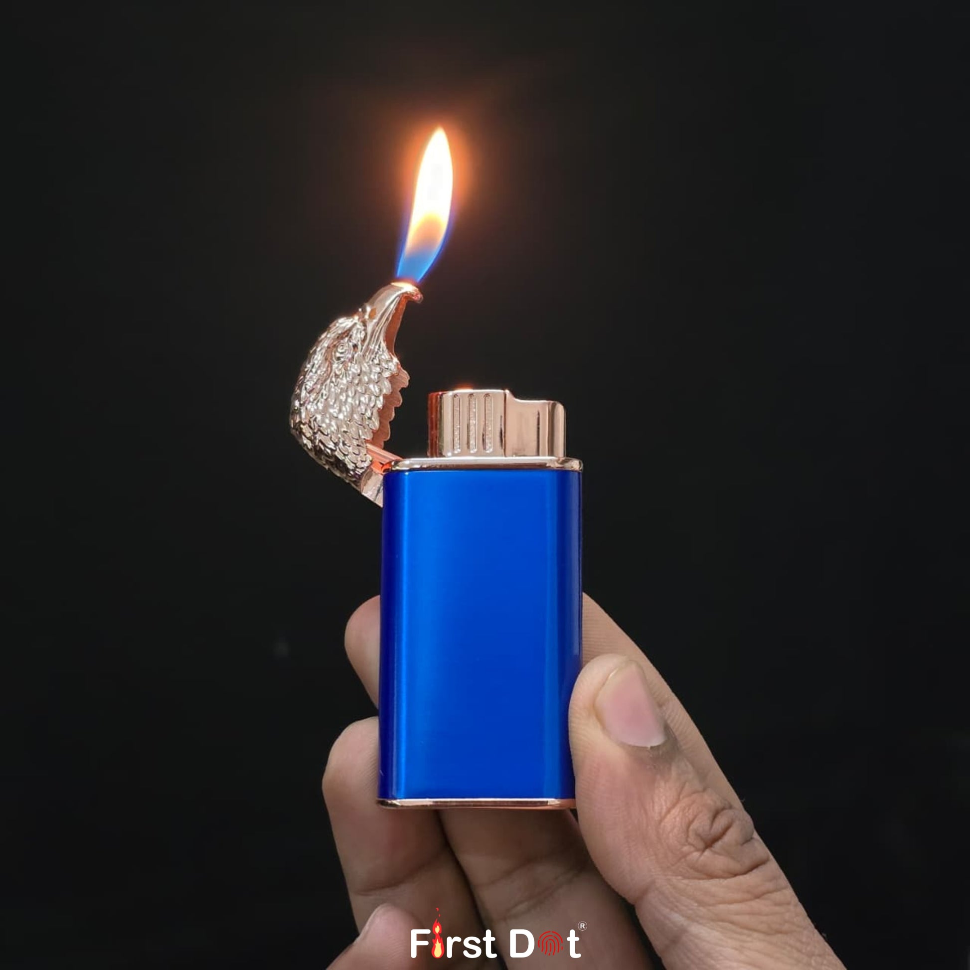 The First Dot Eagle Dual Flame Button Gas Lighter combines a powerful dual flame system with a bold eagle head metal design—built to look sharp and perform reliably in everyday conditions. The Blue body paired with metallic detailing gives it a clean, confident presence without trying too hard.
