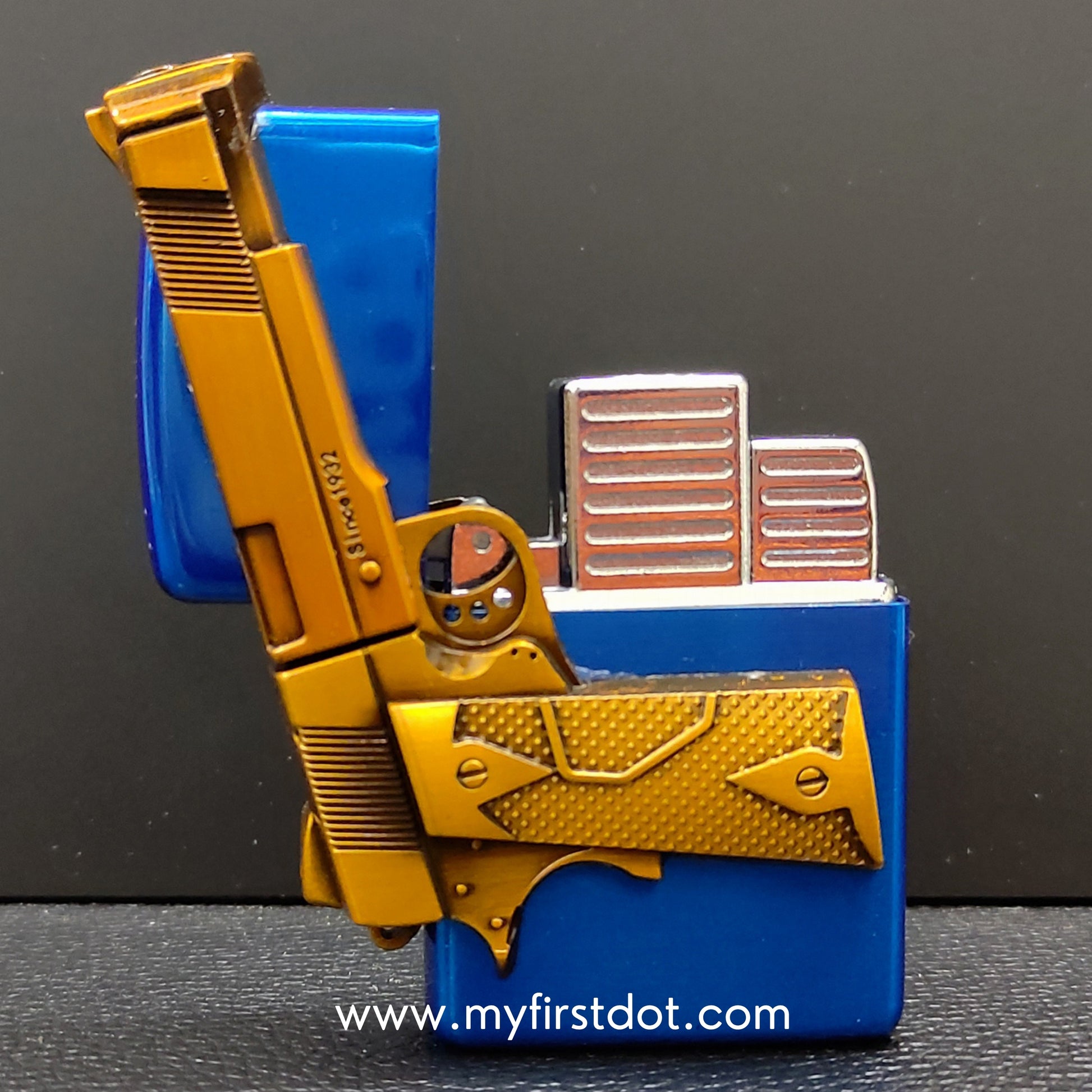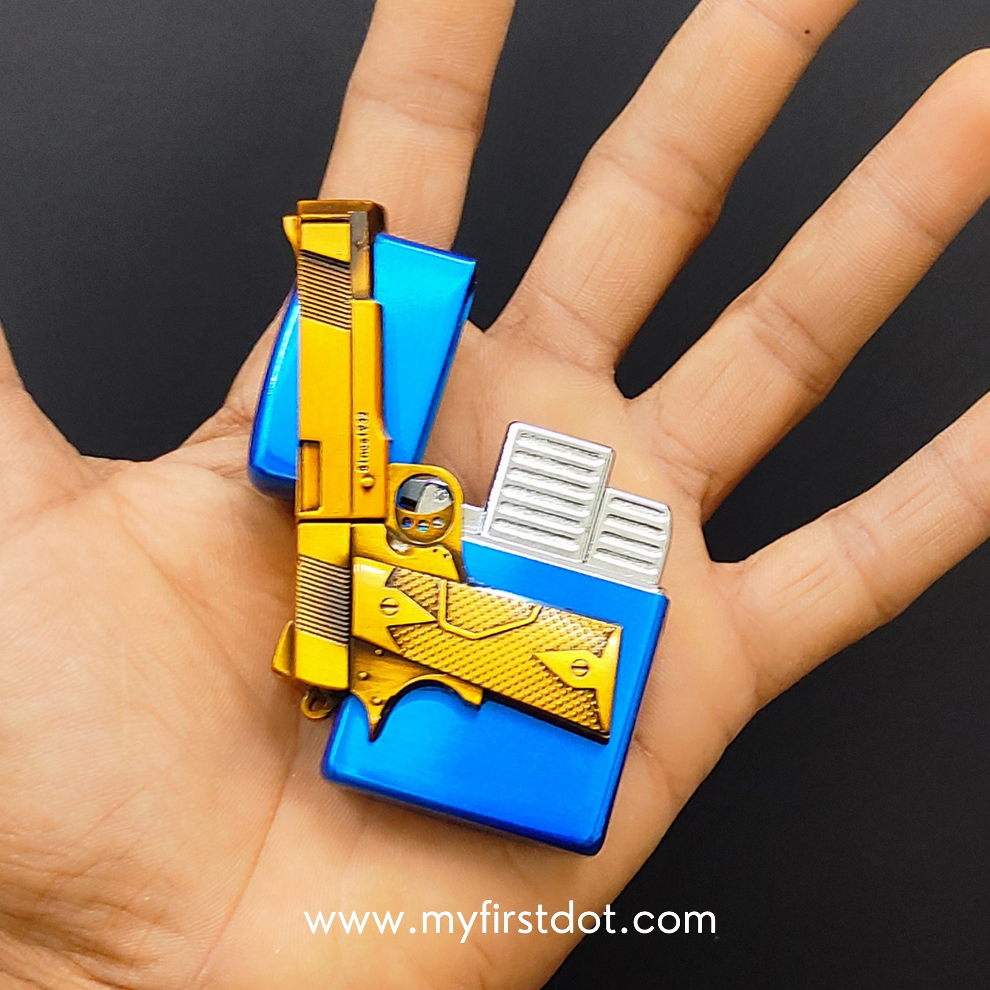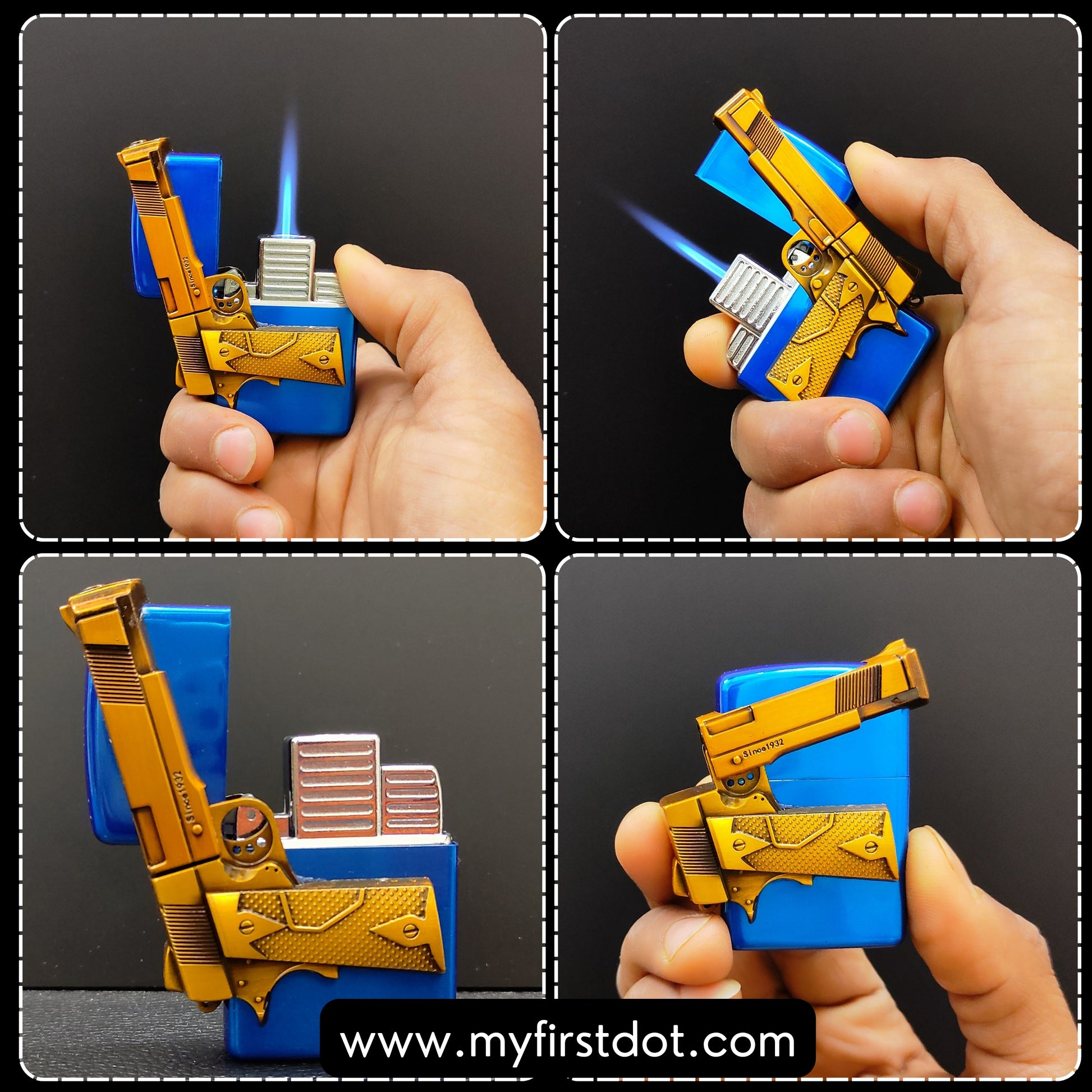Unique Gun Engraving Lighter Jet Flame Cigarette Lighter Button Gas Lighter by First Dot – crafted with premium metal for durability, sleek style, and long-lasting performance. Featuring smooth button ignition and simple gas refilling at any local cigarette vendor or betel shop, this lighter delivers reliability with a bold embossed dice design. Perfect as a daily essential or a thoughtful gift for friends, loved ones, or collectors. (Please keep out of reach of children.