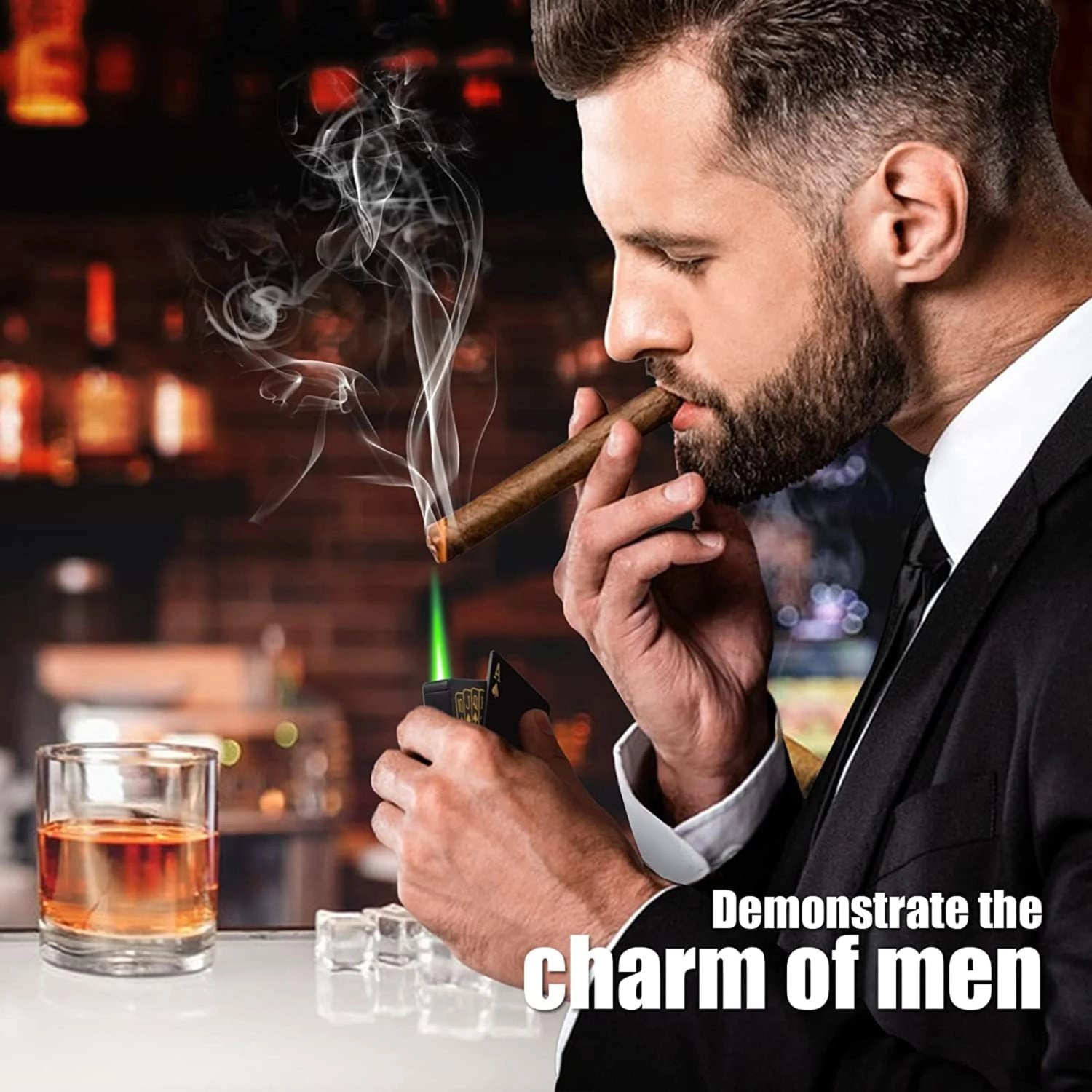 Ikka Black Refillable Green Jet Flame Lighter – Metal Playing Card Torch | Windproof Gift for Men