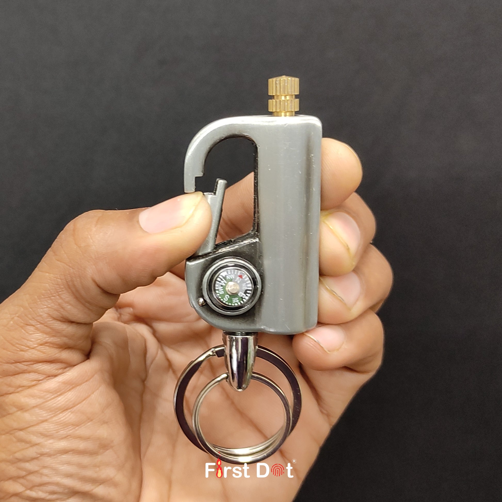 The First Dot Windproof Compass Fuel Lighter Keychain combines a permanent match ignition system with a rugged metal body and an integrated compass—making it more than just a lighter. Fueled by liquid fuel, it delivers a consistent flame even in windy outdoor conditions, while staying compact enough for everyday carry.