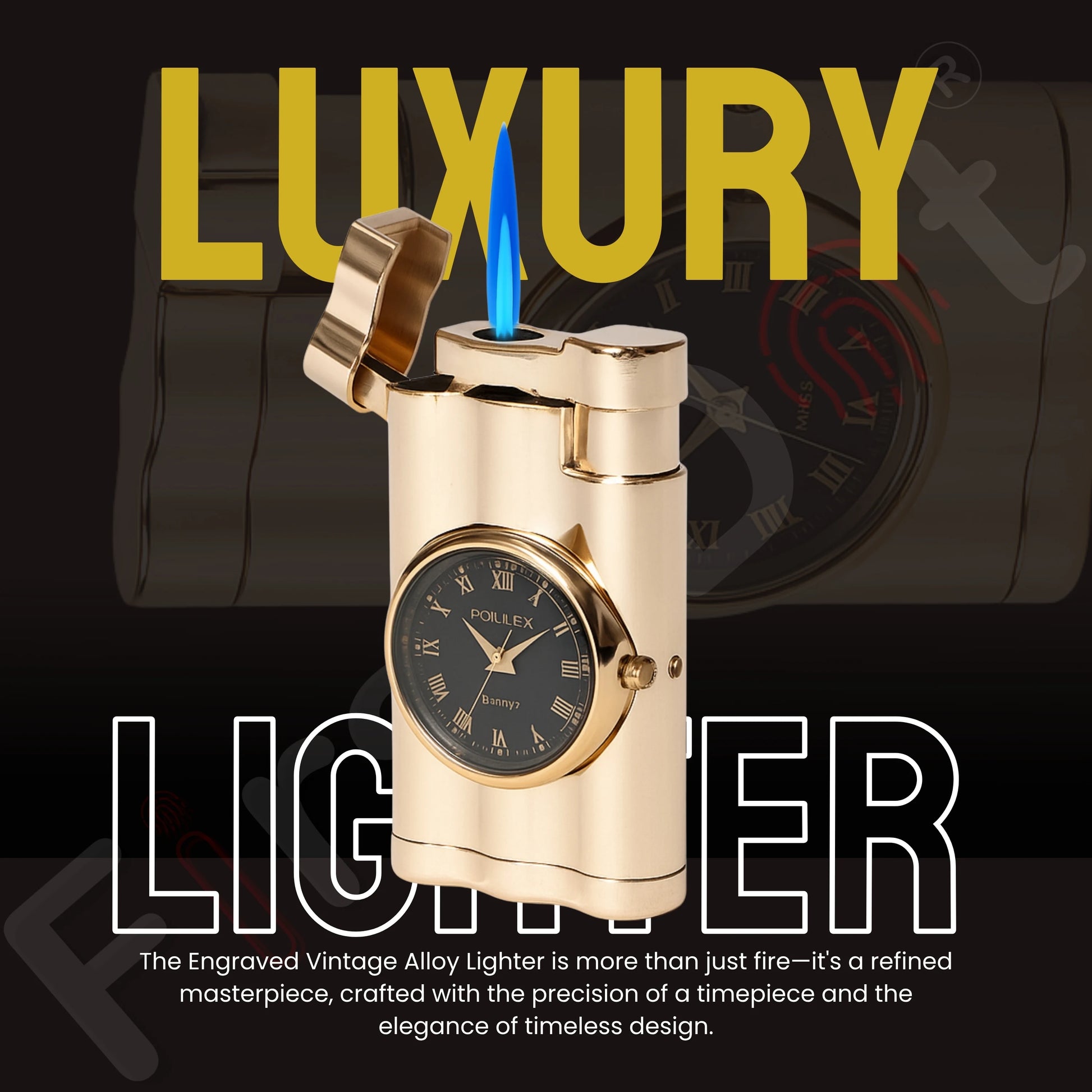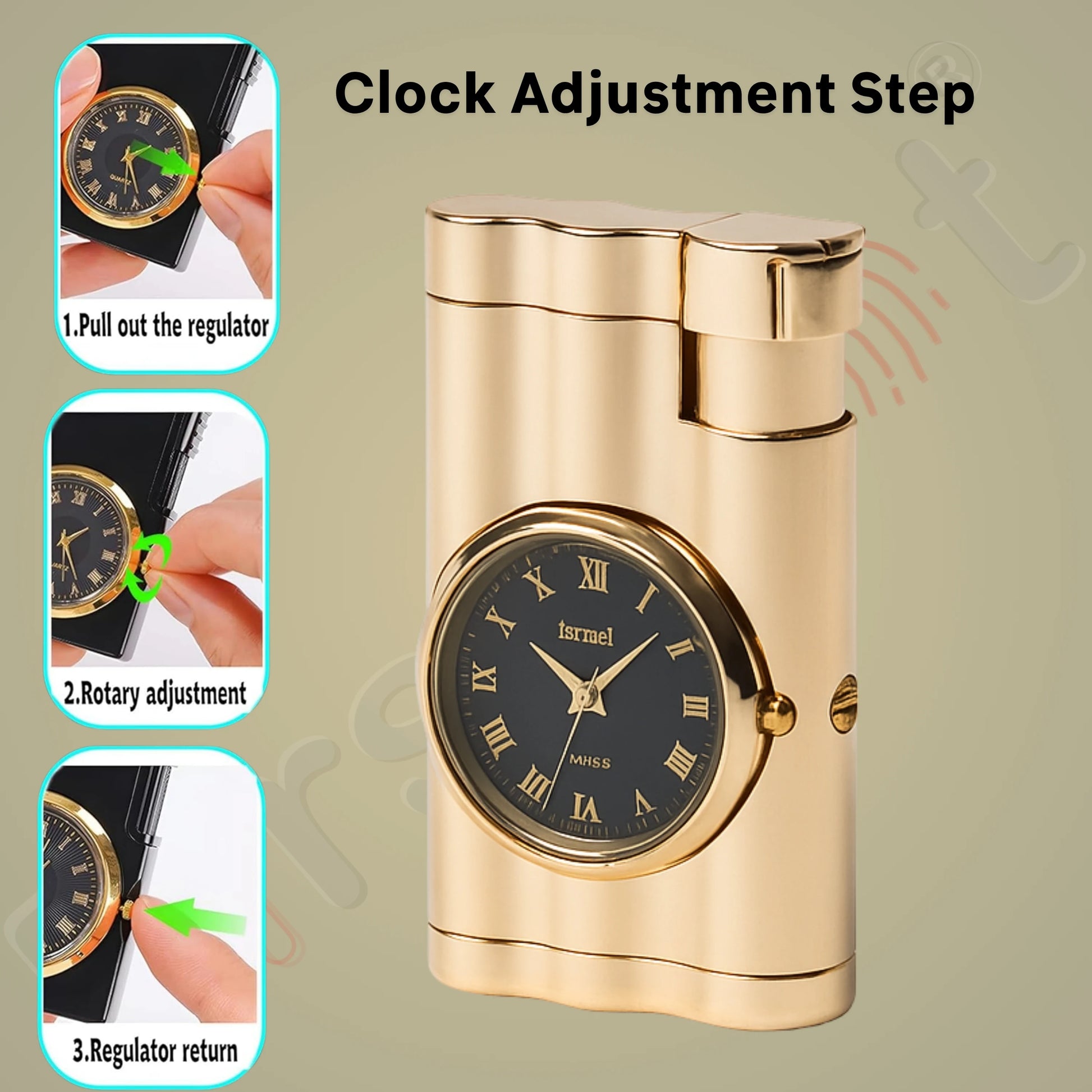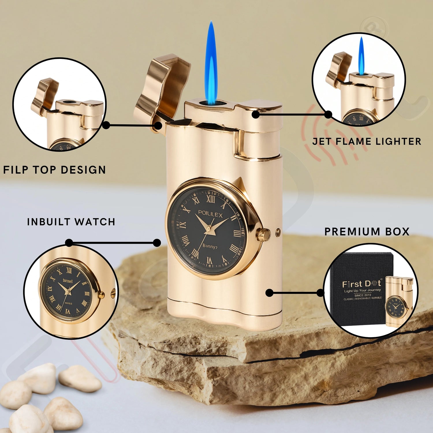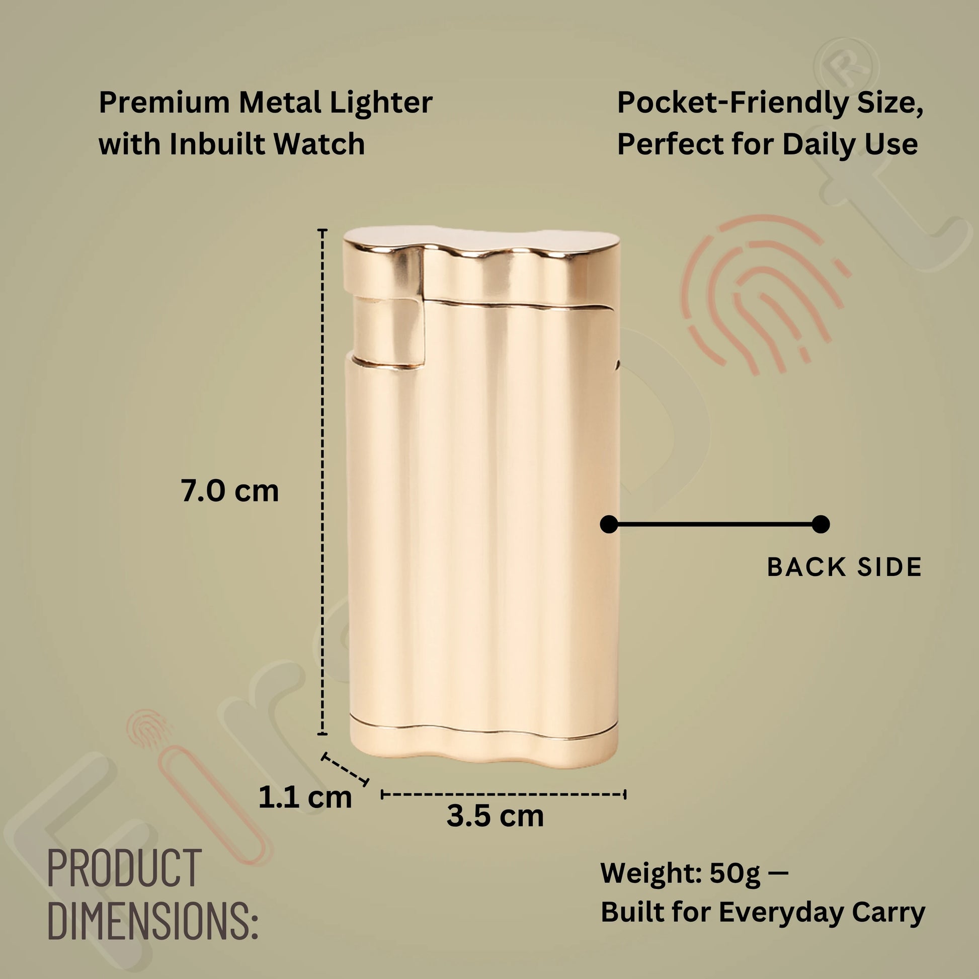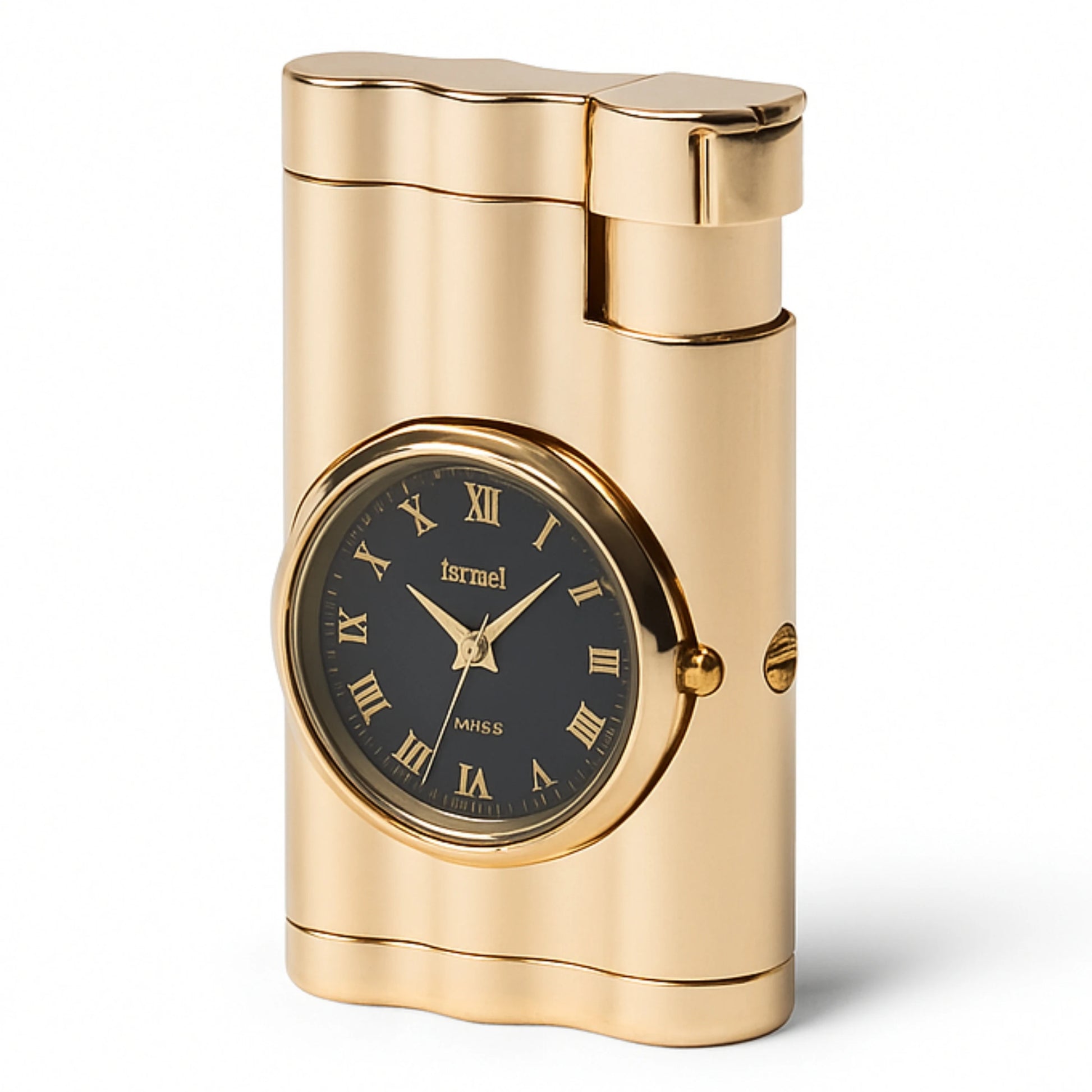 Luxury dual-use lighter with built-in quartz watch for the modern gentleman.